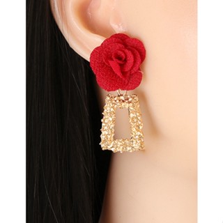LRC Anting Tusuk Fashion Red Multi-layer Chiffon Cloth Lace Flower V3587X