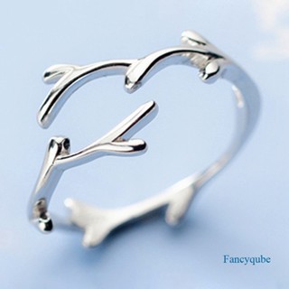 Cincin Cabang Sederhana Daun Tipis Warna Silver Dapat Disesuaikan Untuk Wanita Ladies Gadis Trendi Fashion Jari Perhiasan Hadiah