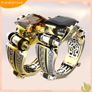 < Freshbread > Wanita Cincin Faux Square Crystal Two-tone Vintage Keren Punk Hadiah Berongga Bling Cubic Zirconia Ladies Finger Ring Untuk Pesta