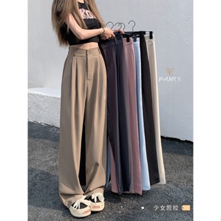 Red Coklat Drape Setelan Celana Wanita Musim Semi dan Musim Gugur Kasual High-End Lebar Kaki Celana Pinggang Tinggi Lurus Sempit versi Mengepel Celana