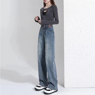 Red Celana jeans kaki lebar berpinggang tinggi wanita 2023 musim semi dan musim panas baru kaki lurus longgar versi ramping dan sempit menggantungkan celana mengepel lantai