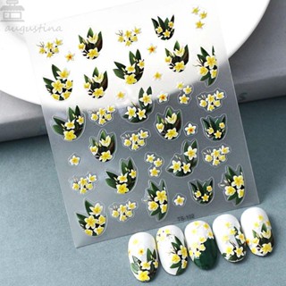 AUGUSTINA Agustina Kupu-Kupu Stiker Kuku Wanita Fashion Anggrek Perekat Diri Manikur Aksesoris Plumeria rubra Nail Art Dekorasi
