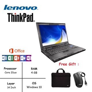Laptop Murah Pelajar Sekolah Lenovo T400 Core 2Duo RAM 4GB HDD 500GB Win 10
