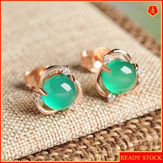 [Ready Stock]New Hetian Jade Green Chalcedony Stud Earrings for Women