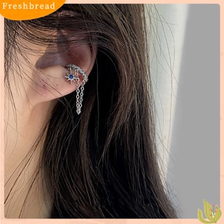 < Freshbread > 1Pc Klip Anting Bintang Geometris Kubus Zirconia Gaya Korea Rantai Rumbai Klip Telinga Untuk Pesta Perjamuan Pernikahan Prom