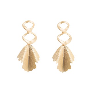LRC Anting Gantung Fashion Golden Fringe Small Lotus Leaf Geometric Earrings Y63222