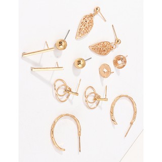 LRC Anting Tusuk Fashion Golden Geometric Alloy Ring C-shaped Leaf Earring Set D81680