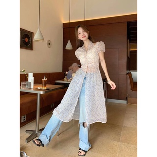 Suhao V-Leher Bunga Lengan Pendek Gaun Wanita Musim Panas Manis Gadis Panas Menggantung Leher Temper