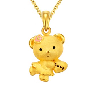 Goldkingdom Fashion Perhiasan Aksesoris Ready Stock Berlapis Emas Berharap Beruang Kalung Dengan Cinta Berbentuk Drop Lem Pink Enamel Warna Liontin Gadis
