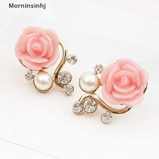 Mornin Wanita Manis Fashion Earings Rose Shaped Mutiara Buatan Berlian Stud Earrings id