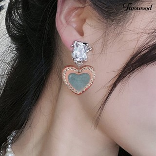 Twowood 1pasang Menjuntai Anting Vintage Romantis Bersinar Cubic Zirconia Hias Geometris Hadiah Wanita Hati Liontin Stud Earrings Pesona Perhiasan Untuk Pacaran