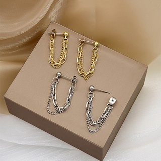 Anting Stud Rantai Panjang Bahan Logam Warna Emas Perak Untuk Wanita