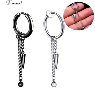 twowood 1Pc Men Long Chain Ear Piercing Loop Clip Hoop Earring Jewelry Gift