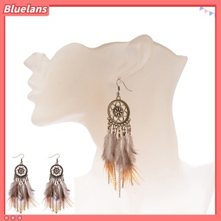 Anting Kait Rumbai Panjang Desain Dream Catcher Aksen Bulu Untuk Wanita