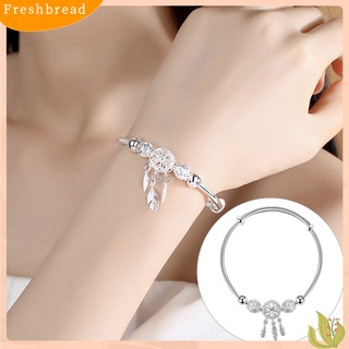 |Frebre Frebre| Gelang Tangan Wanita Desain Dream Catcher Rumbai Bulu Warna Silver Untuk Pesta