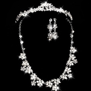 [LS] Perhiasan Pengantin Mewah Berlian Imitasi Mengkilap Lucu Mahkota Bunga Kalung Anting Set
