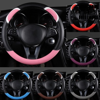 1 Pasang Sarung Setir Mobil Bahan Serat Karbon Anti slip Ukuran 15 "