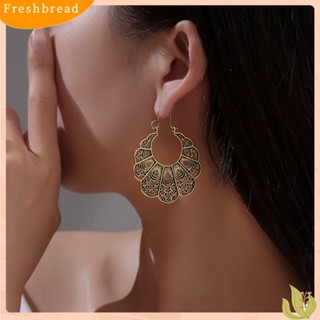 < Freshbread > Vintage Wanita Berongga Keluar Bunga Menjuntai Geometris Hoop Anting Perhiasan Hadiah