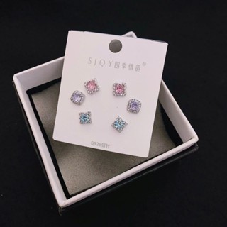Anting Silver925 Perak isi 3set mata tanam kilau mirip emas asli Premium Quality Anti Karat anti alergi S403