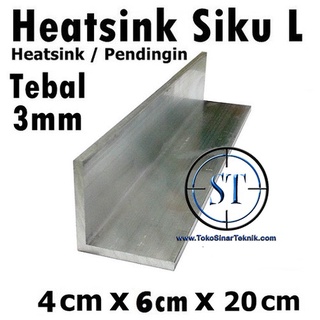 Heatsink cooling cooler pendingin HS Heat Sink Bentuk L SIku 90 Derajat Ukuran 4cm x 6cm x 20cm Led Mesin Power Ampli Aktif AMplifier Alumunium Tebal 3mm
