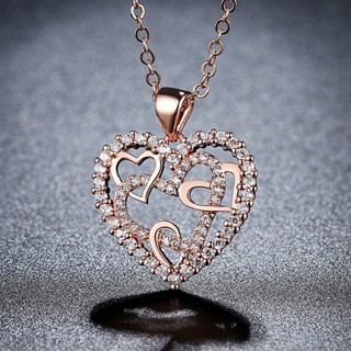Jepang Korea Style Minimalis Cubic Zircon Cinta Ganda Kalung Tembaga Liontin Hati Rantai Sederhana