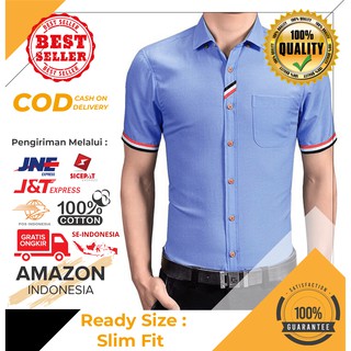 ATASAN BAJU KEMEJA WARNA BLUE BIRU BAHAN KATUN IMPORT SLIM FIT MELAR SEMUA UKURAN FIT TO L ORIGINAL