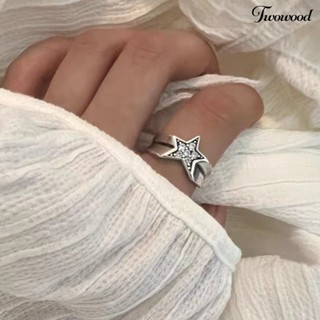 Cincin Model Terbuka Desain Pentagram Irregular Aksen Berlian Imitasi Gaya Vintage Untuk Wanita