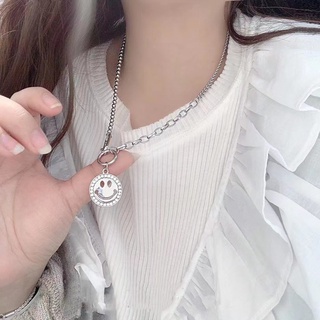 Korea titanium baja tidak memudar merek fashion kalung wanita jahitan rantai cinta pelat bulat antin