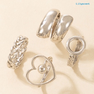 4pcs / Set Cincin Jari Bentuk Hati Geometris Model Terbuka Bahan Alloy Untuk Pesta