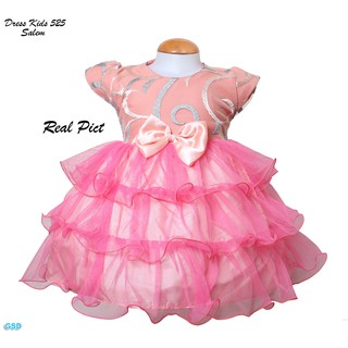Dress Kids 525/Terusan Dress Anak Bayi Brukat Saten Kombi Gliter Dan Tile/Baju Pesta Terbaru