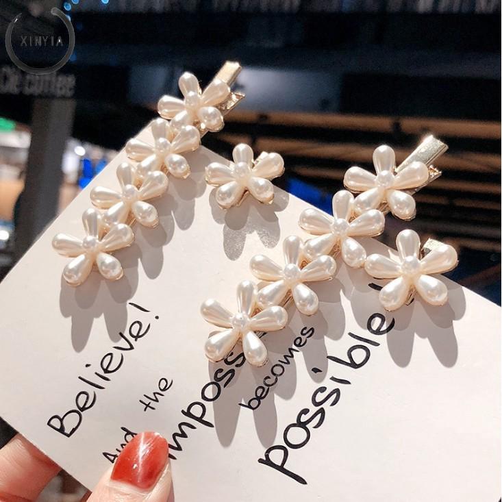 Magic789 Jepit Rambut Mini Model Bunga Dengan Mutiara Untuk Bayi / Anak Perempuan