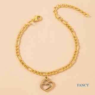 Gelang Model Terbuka Bahan Stainless Steel 316l Desain Hati Ganda Warna Emas Untuk Wanita