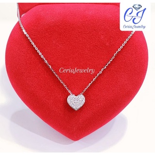 Kalung Perak Asli Silver Wanita 925 Lapis Emas Putih Model Nori dengan Liontin Love