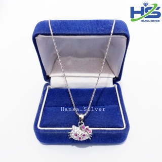 Kalung Anak Perak Asli Silver 925 Lapis Emas Putih Model Karakter Hellokitty - Perhiasan Anak
