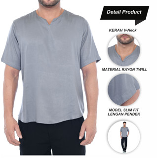 Kemeja Koko Pria Kerah V-neck Model Basic Polos Lengan Pendek Bahan Rayon Twill Premium