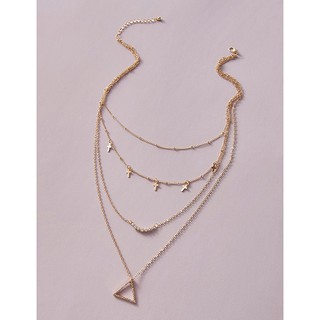 LRC Kalung Fashion Gold Color Triangle Alloy Cross Multilayer Necklace P14794