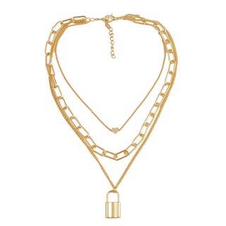 LRC Kalung Fashion Alloy Lock Heart Love Multi-layer Necklace K43685