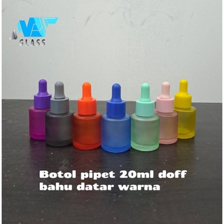 botol kaca pipet 20ml frosted bahu datar full colour warna / botol kaca serum 20ml