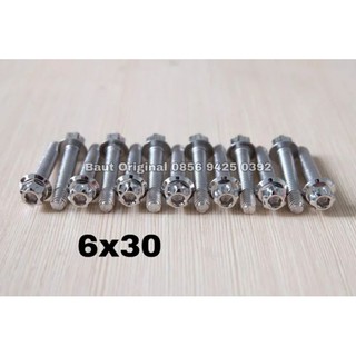 baut probolt gs1 6x30 mm stainless new model drat 10 panjang 3cm ukuran 10 silver gear 2 kunci belimbing heng