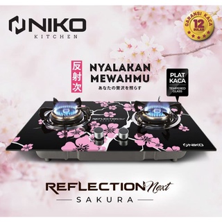 NIKO Kompor Gas Tanam Kaca 2 Tungku Tempered Glass Reflection Next Sakura