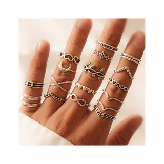 LRC Cincin Fashion Silver Color 18 Alloy Rings Set P82849