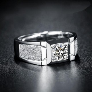 Cincin Pria Baja Titanium Perak Matte Berlian Kristal Silver Rings