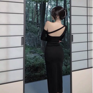 dress korean style sexy halter neck off-shoulder dress pure desire backless lengan panjang one-word