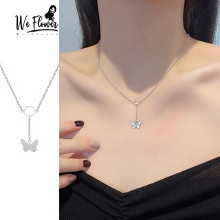 We Flower Kalung Rantai Rumbai Liontin Kupu-Kupu Warna Silver Gaya Korea Untuk Wanita
