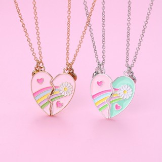 2pcs/set Lucu Warna-Warni Pelangi Bentuk Hati Liontin Rantai Sahabat Kalung Bff Persahabatan Anak Perhiasan Hadiah Untuk Perempuan
