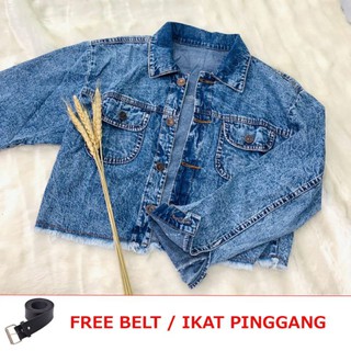 TOP BRAND - JAKET JEANS WANITA CROP ALL SIZE WASHED SNOW BLACK BLUE