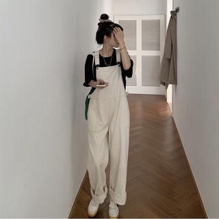 Overall denim longgar wanita 2022 musim semi dan musim panas celana panjang one-piece lurus berpingg