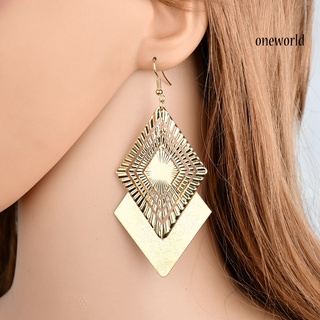 OW@ Fashion Matte Hollow Double Layer Jewelry Rhombus Long Dangle Hook Earrings
