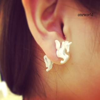 OW@ 1Pc Women Punk Cool Stereoscopic Unicorn Horse Impalement Ear Stud Earring
