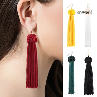 OW@ Bohemian Women Woven Knot Long Tassel Dangle Hook Earrings Statement Jewelry